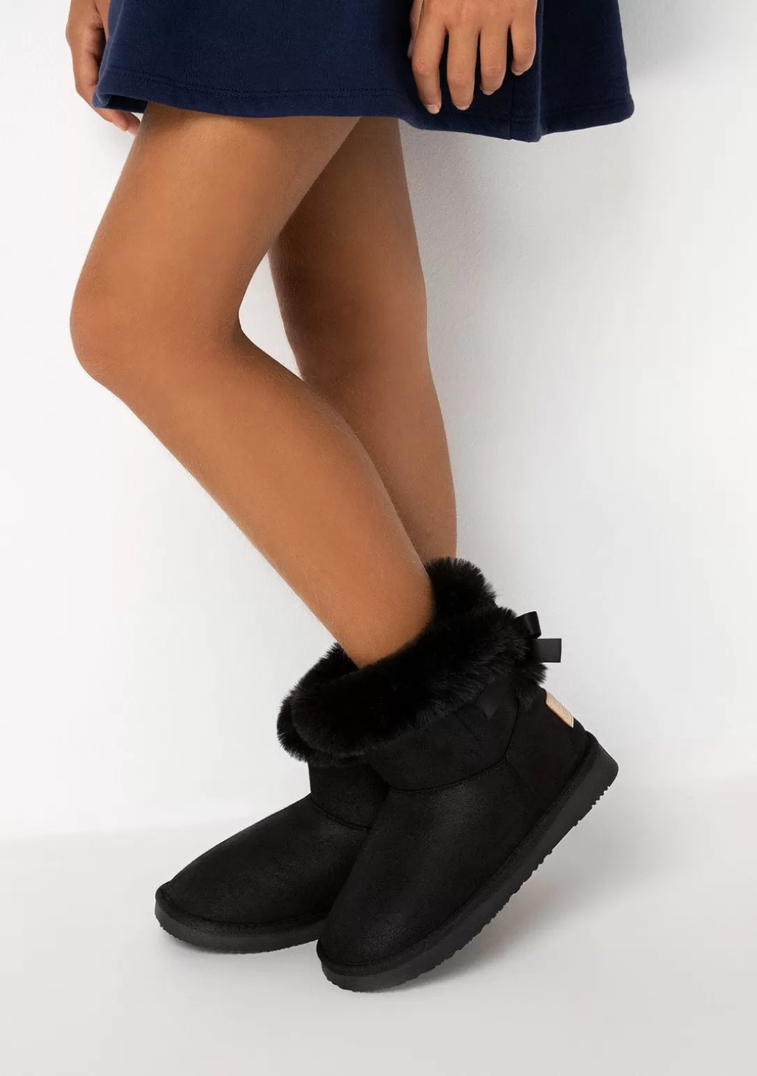 Botas australianas con lazada. Un esencial en tono negro para sus episodios de frío.