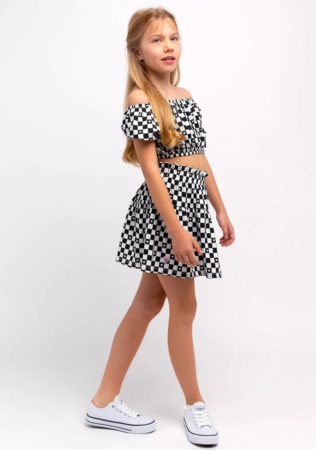 Nuevo top de manga corta en color negro con estampado de cuadros. Tiene el detalle del logo de Conguitos en uno de los laterales. Perfecto para que las niñas vayan monas y fresquitas este verano.