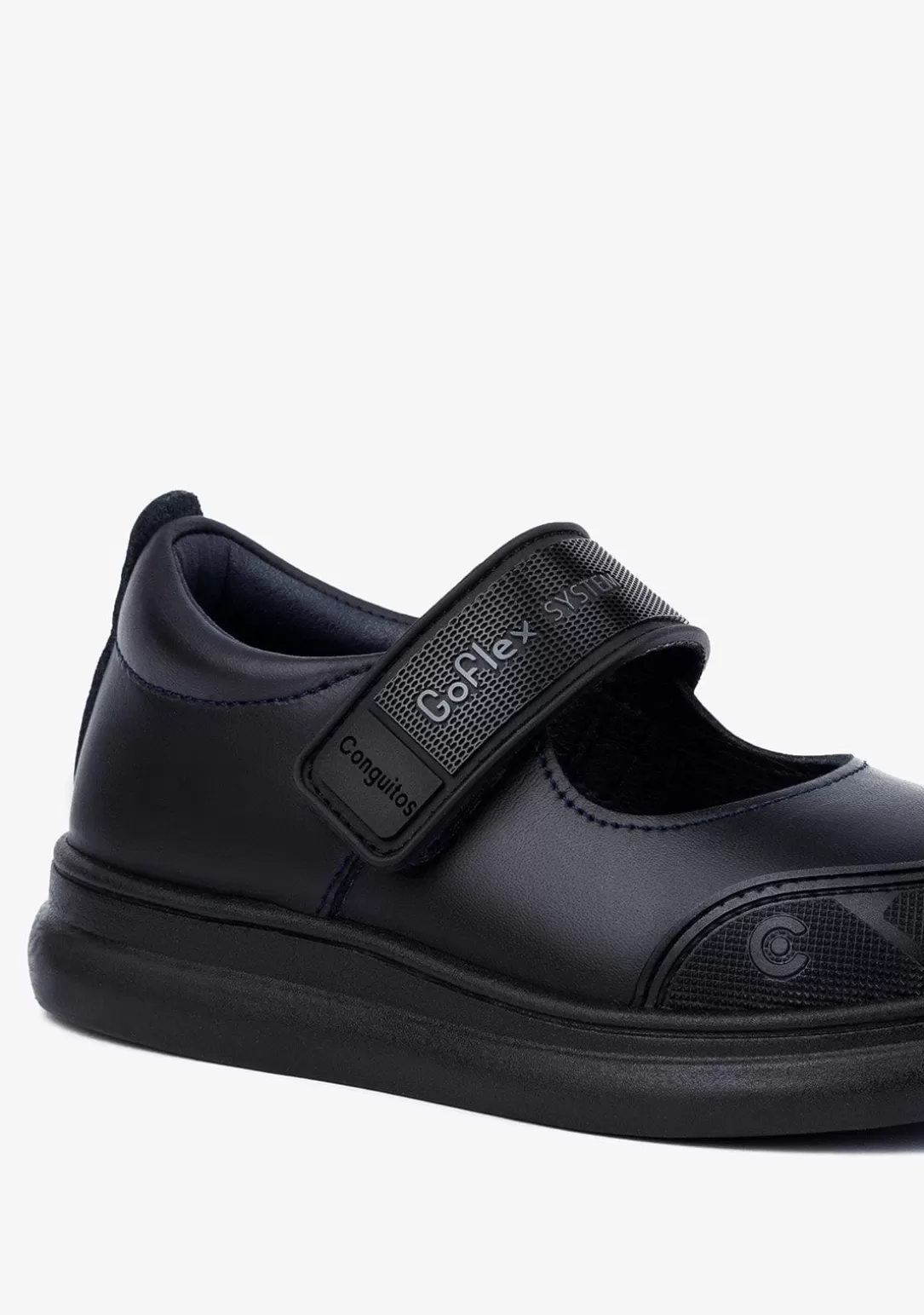 ¡Vuelta al cole! Conguitos, presenta estos colegiales estilo Mary Janes para niña confeccionadas con piel de primera calidad en color azul marino. Los colegiales más cómodos para los pies de tu niña gracias a su Sistema Goflex que garantiza la flexibilidad, movilidad y resistencia que tu pequeña necesita en el cole. Además de contar con un refuerzo de goma en la puntera que protege de golpes y rozaduras.