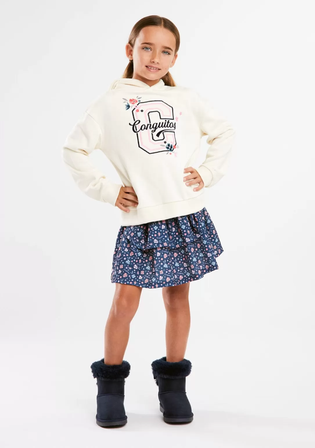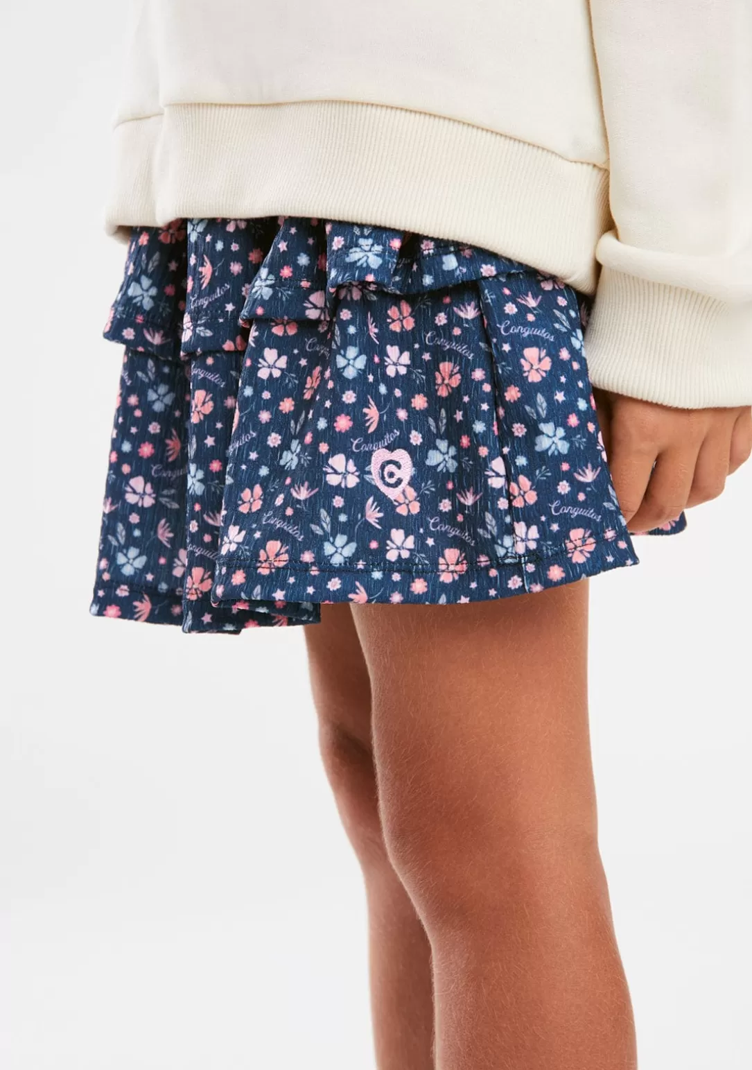 Falda de volantes con estampado floral Conguitos. Una pieza sencilla en tono marino con la que complementar cualquiera de sus estilismos.