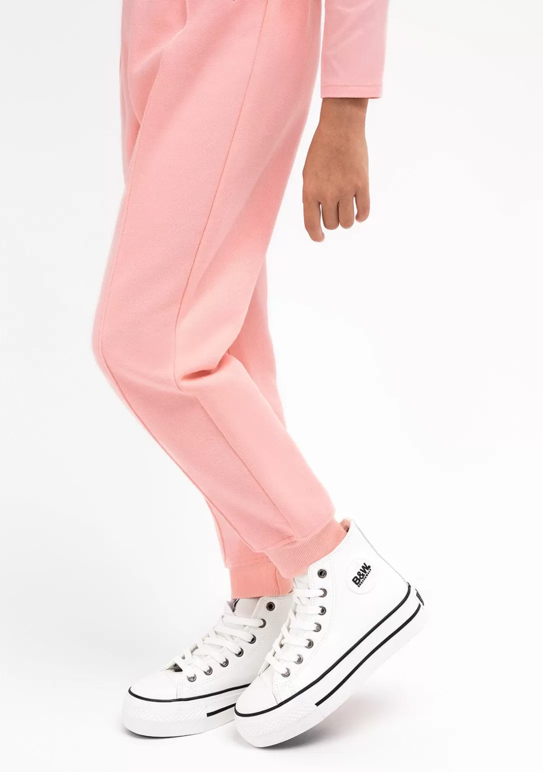 Pantalón jogger de niña confeccionado en algodón. Cinturilla y puños elásticos que se adaptan y aíslan del frío. Costura central en la pernera que les da un toque muy original. Este modelo es un básico versátil que no puede faltar en el fondo de armario.