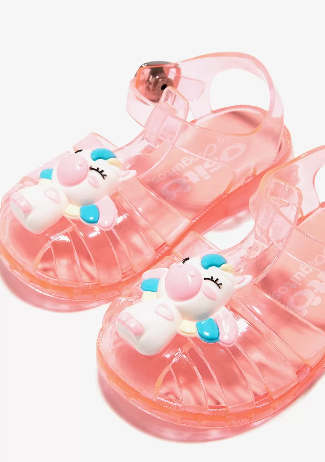 Cangrejeras rosas de goma perfectas para la playa o piscina. Tienen cierre de hebilla con clip fáciles de poner y quitar. Las tiras de la parte frontal impiden que el pie resbale hacia delante con el agua.