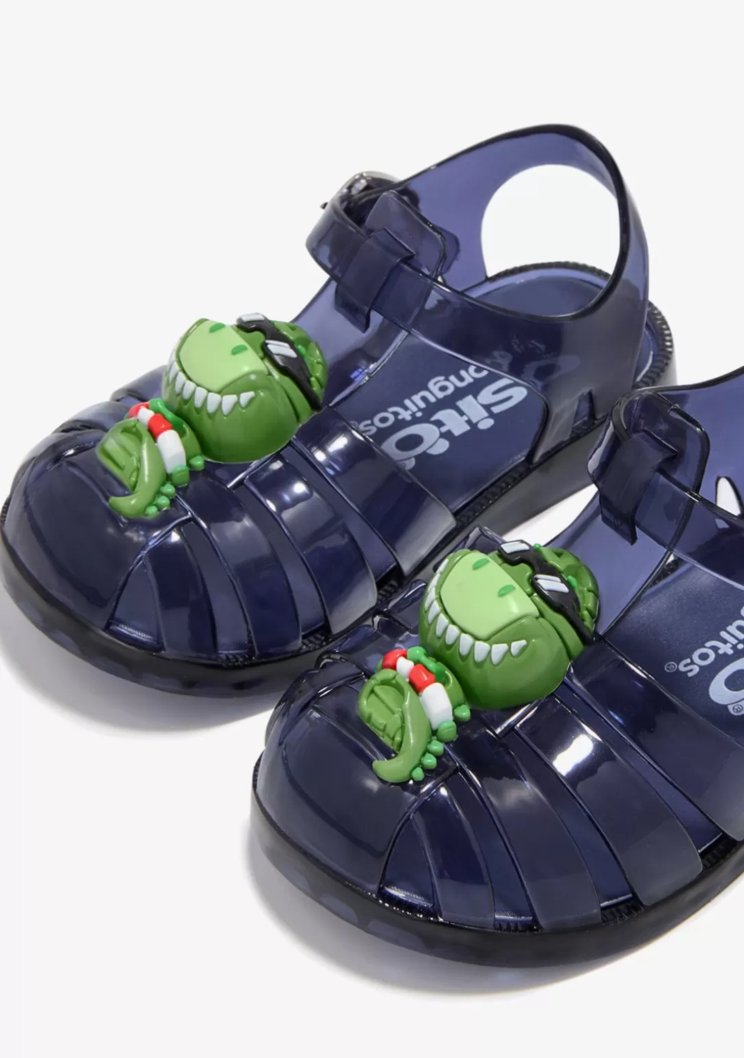 Cangrejeras azules de goma perfectas para la playa o piscina. Tienen cierre de hebilla para mayor sujeción al pie y las tiras de la parte frontal impiden que el pie resbale hacia delante con el agua.