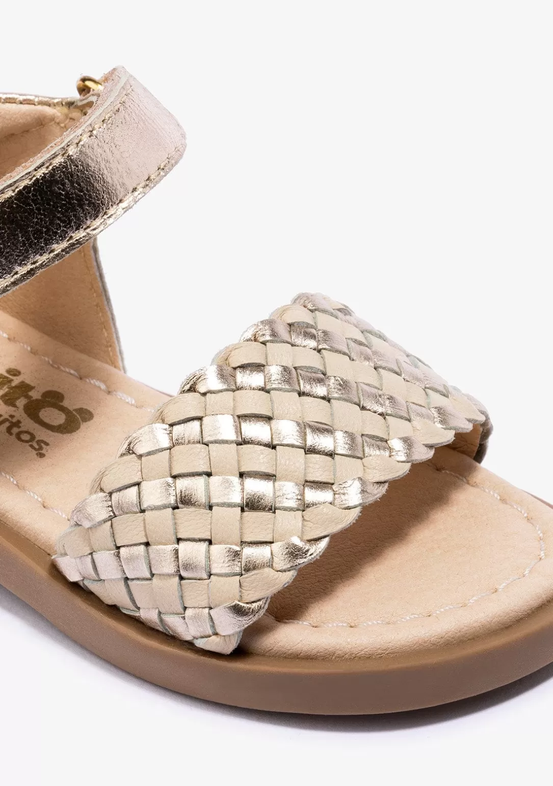 Sandalias de bebé confeccionadas en napa con tiras trenzadas en la parte frontal. Cierre de tira adherente ajustable con pulsera que se ata al tobillo y garantiza una sujeción total del pie. Además, la suela es de goma, lo que las convierte en unas sandalias cómodas, flexibles y de calidad.