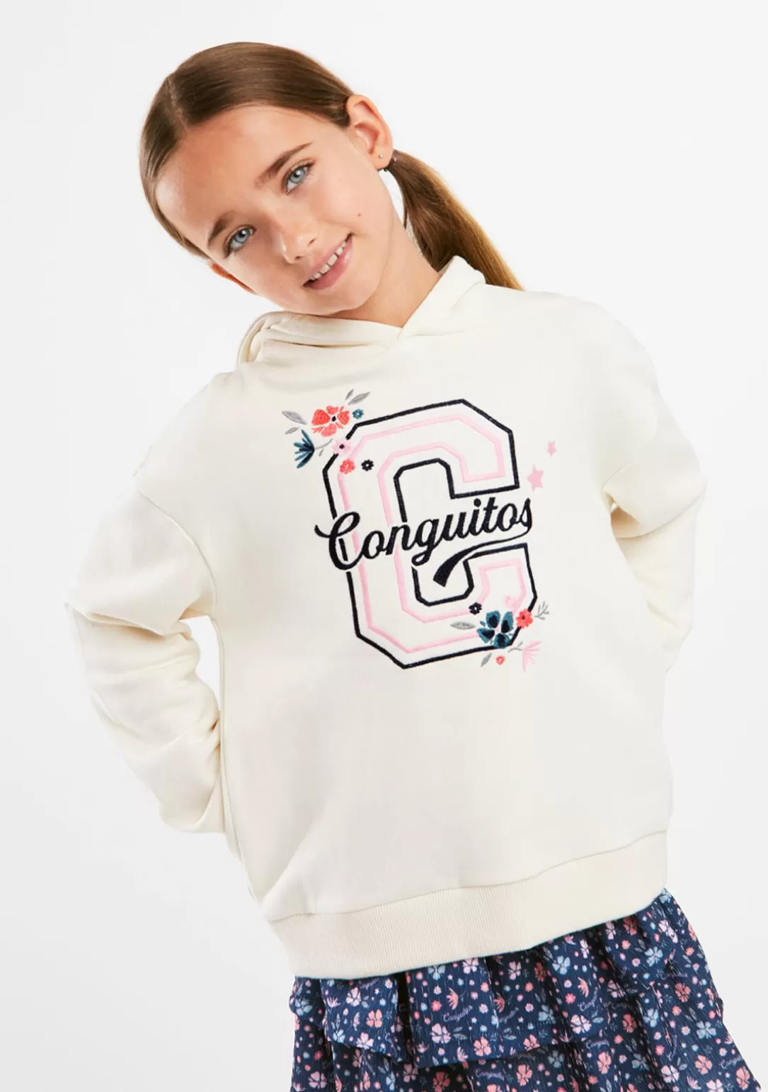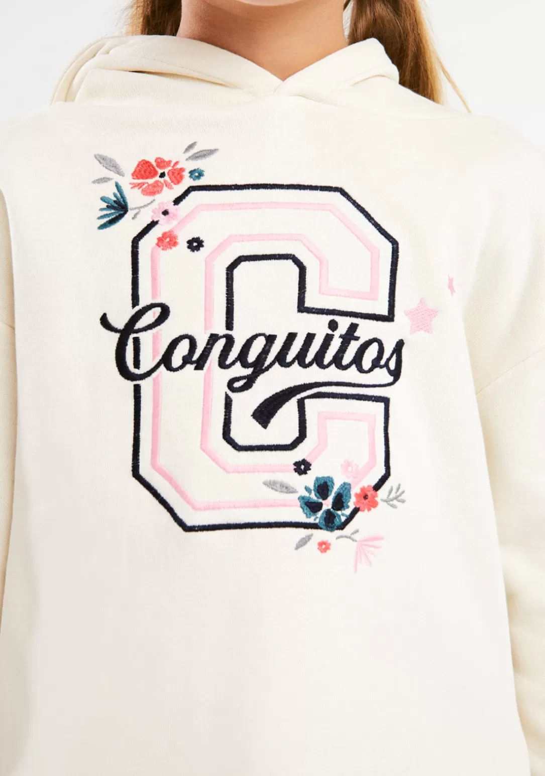 Sudadera con detalle C Conguitos. Una pieza en tono beige diseñada para las aventuras del día a día.