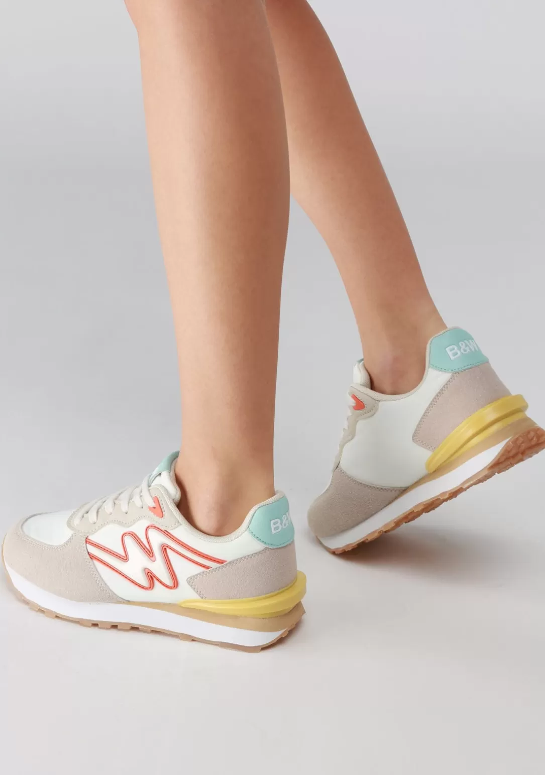 Zapatillas deportivas para niña en una combinación de nailon y ante sintético. Con detalles de color para destacar entre los neutros.