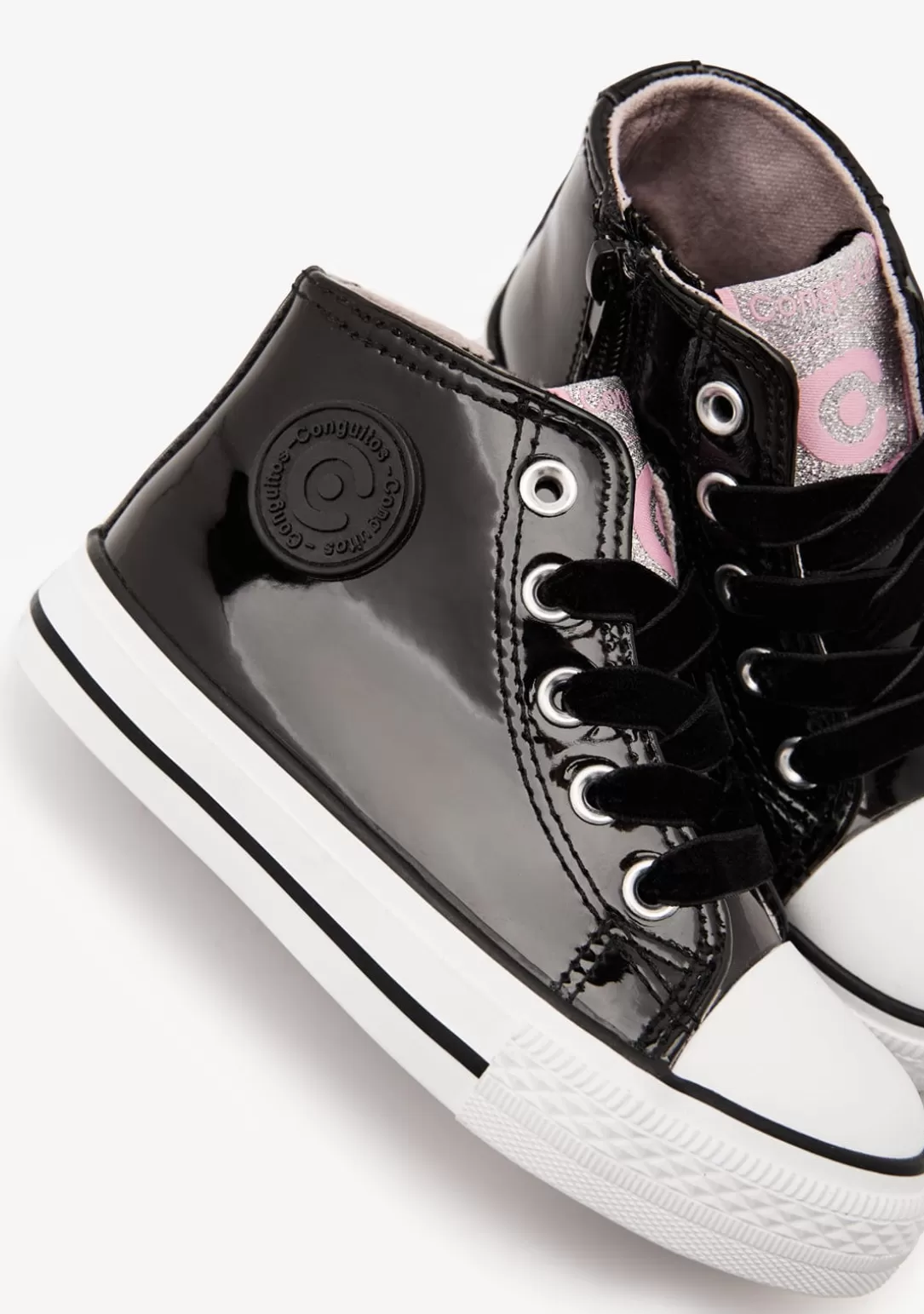 Zapatillas altas de charol en color negro con detalles Conguitos.