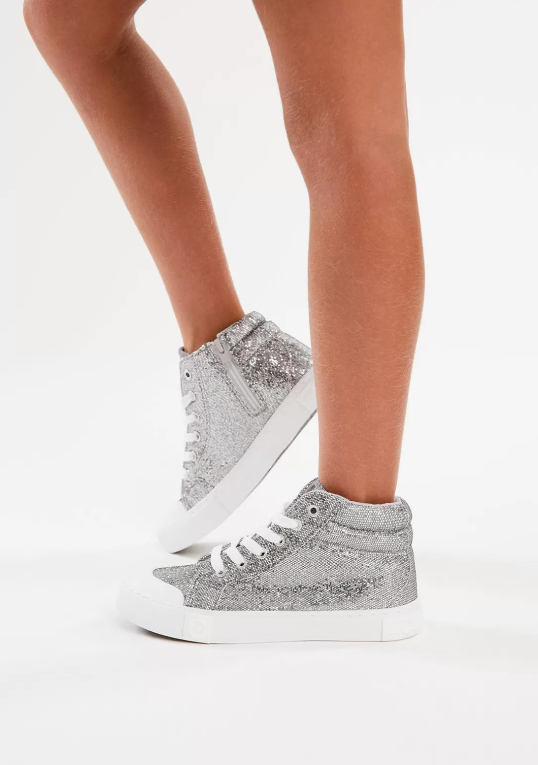 Confeccionadas con material metalizado glitter y forro interior textil. Su cierre de cordones ajustables de algodón permiten una sujeción perfecta para los peques. Además, cuentan con la puntera y el talón reforzados.