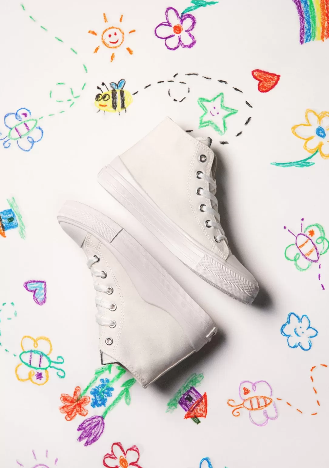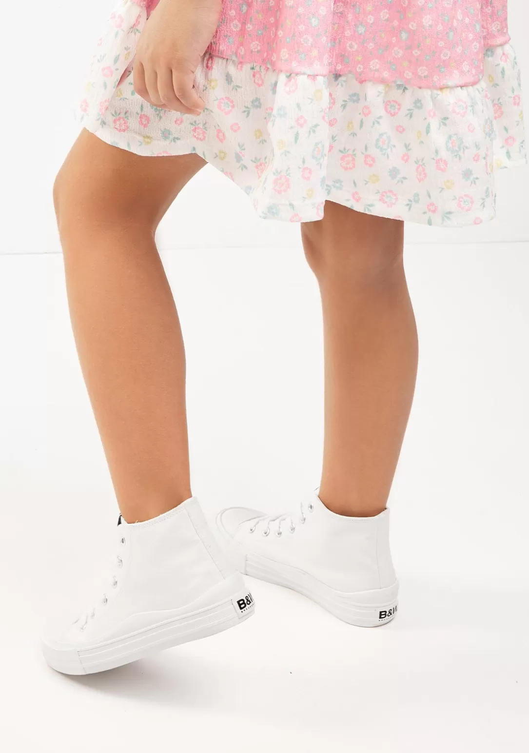 Este modelo de lona blanca es perfecto para llevar a diario. La suela de goma blanca cubre parte de la lona. También, tiene el logo de B&W en el talón y en la parte superior.