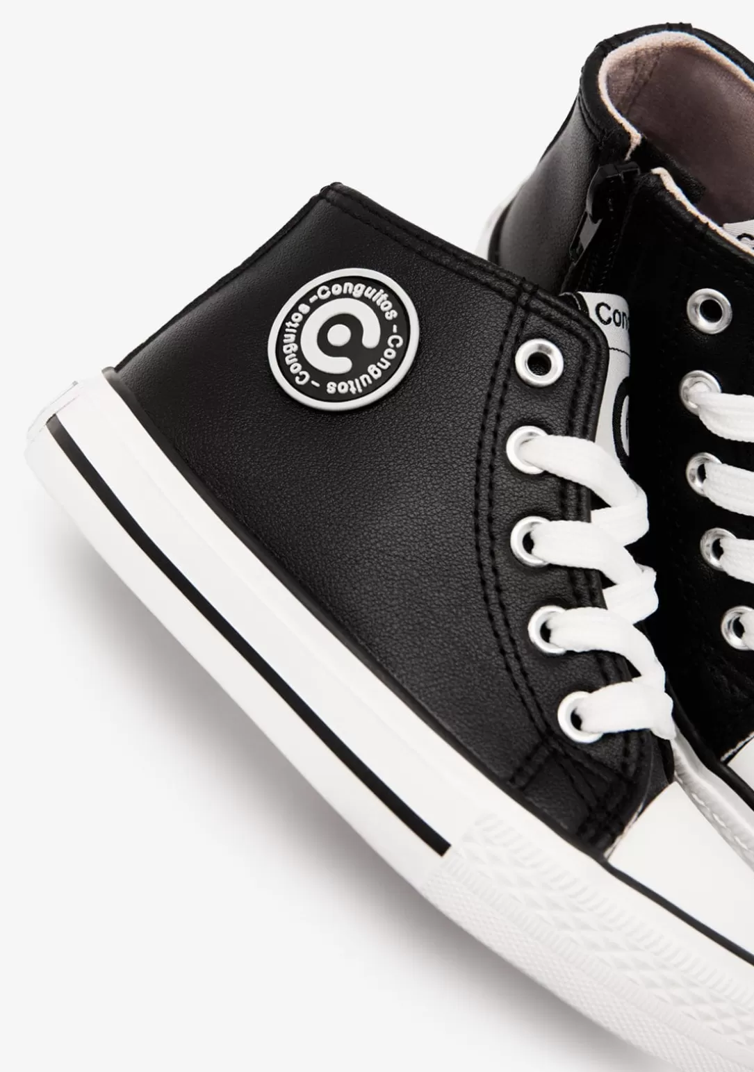 Zapatillas altas de estilo clásico en tono negro, confeccionadas con material sintético. Cuentan con el logo de Conguitos en un lateral y en la lengüeta.