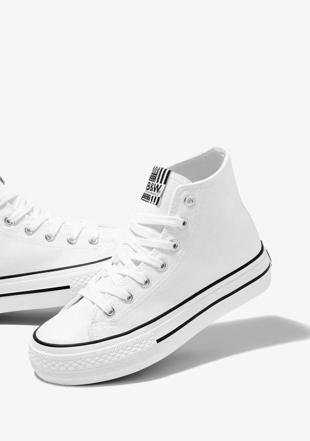 Estas Hi-Top sneakers con plataforma en color blanco se inspiran en las colecciones más casual, combinadas con la personalidad y el estilo más marcado de B&W. Son las sneakers más versátiles. Perfectas para crear miles de looks. ¡Disfruta de la nueva colección primavera-verano!