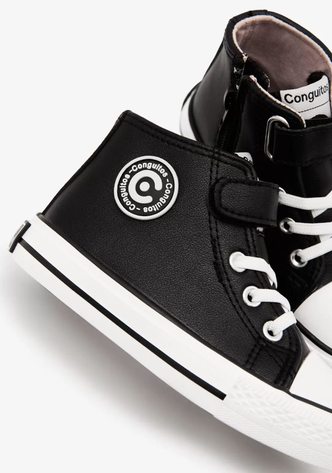 Diseñadas con material de piel sintética y plantilla interior textil. Cuenta tanto con cordoneras como con un cierre de tira adherente que permite una sujeción perfecta para los más pequeños. Además, son fáciles de poner y quitar gracias a su cremallera interior.