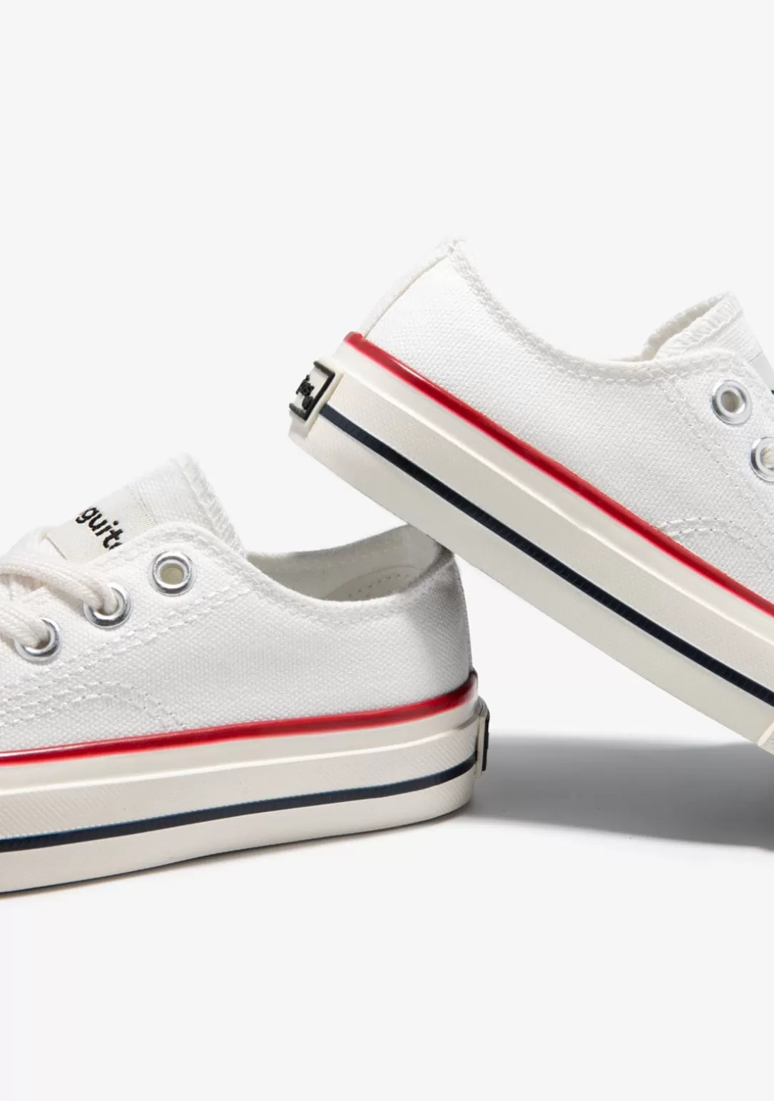 Este modelo en blanco es perfecto para el día a día. Cuenta con cordones blancos, y el logo de Conguitos en el talón. Además, tiene refuerzo en la puntera.