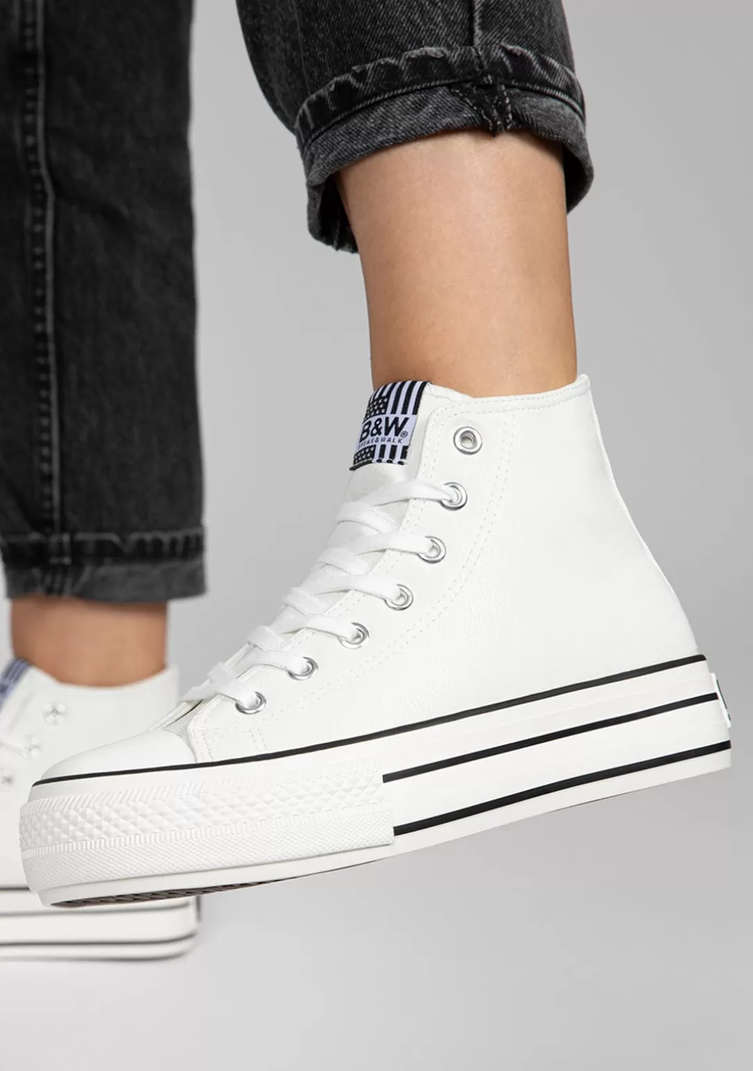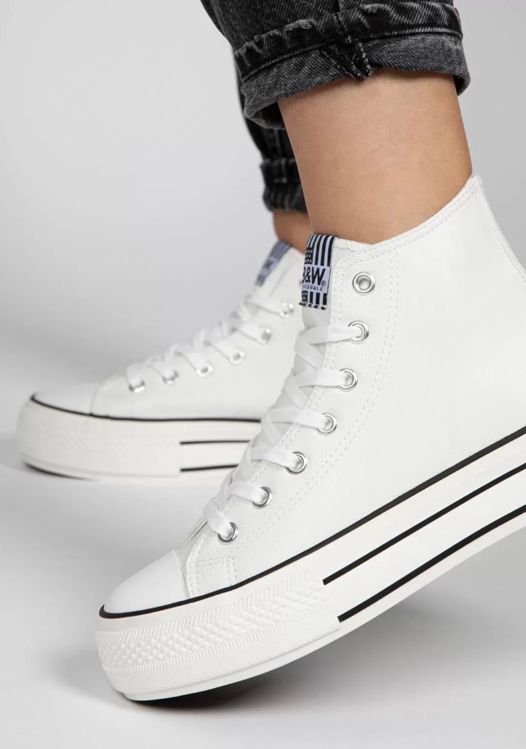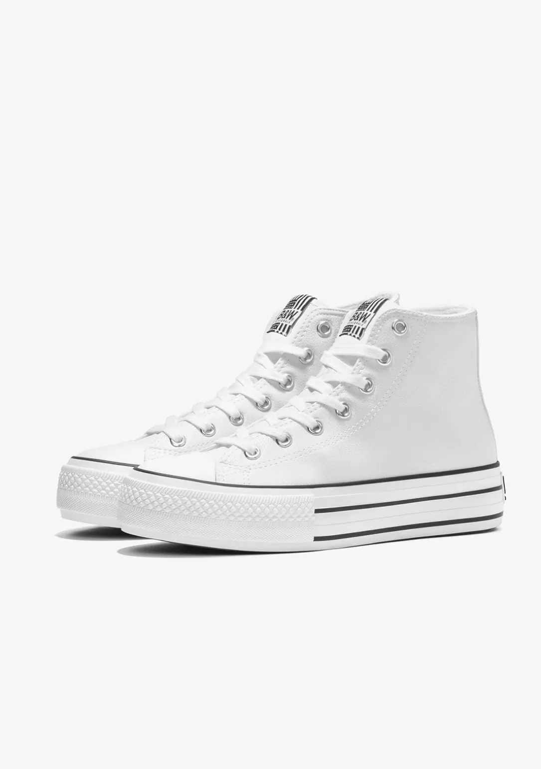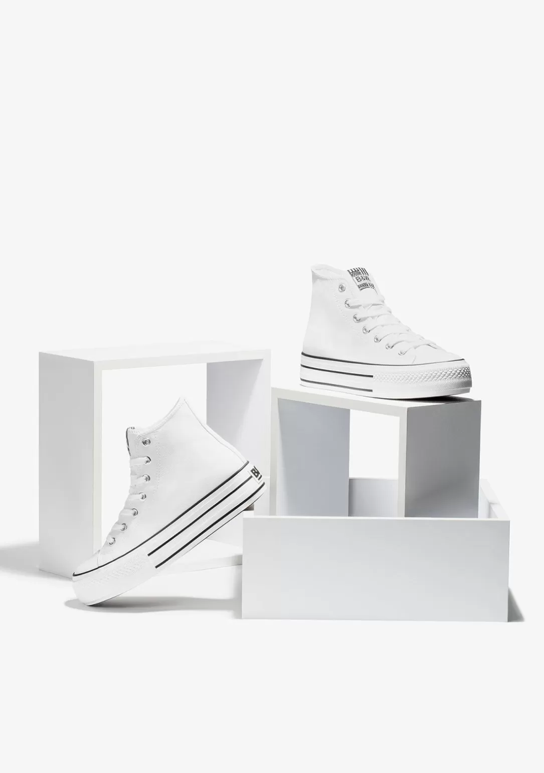 Estas Hi-Top Sneakers con plataforma en color blanco se inspiran en las colecciones más casual, combinadas con la personalidad y el estilo de B&W. Son las zapatillas más versátiles. Perfectas para crear miles de looks. ¡Elige tu favorita!