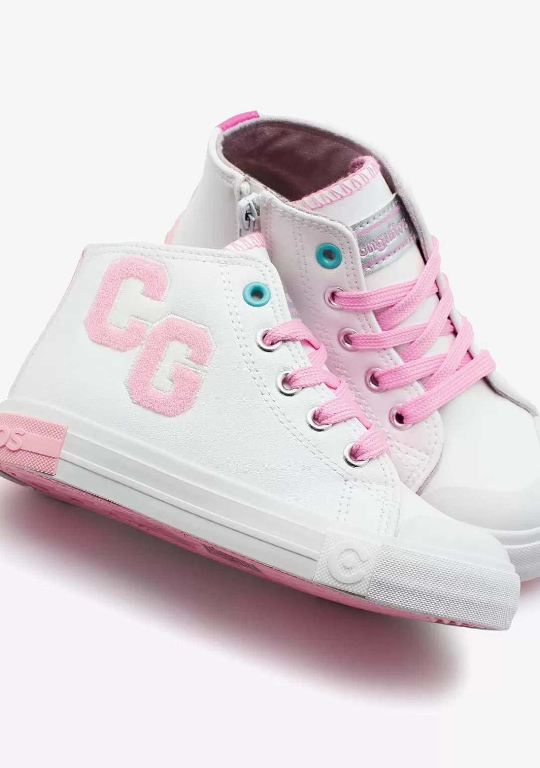 Zapatillas altas en blanco con detalles rosas. Para añadir un toque chic a todos los estilismos.