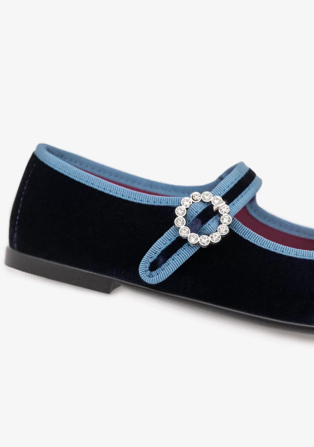 Bailarinas con acabado terciopelo en color marino. Un diseño creado para sus días más especiales.