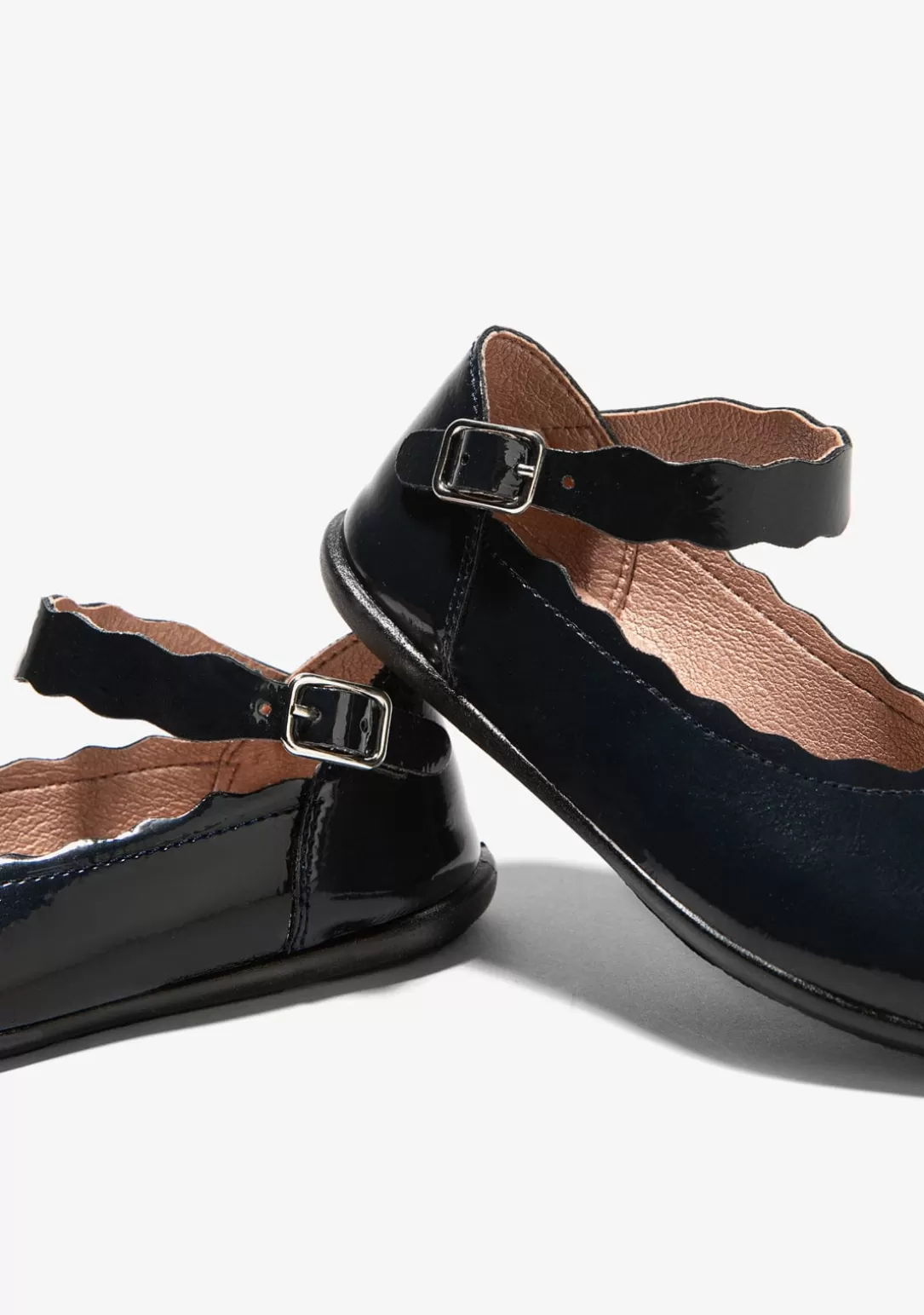 Bailarinas confeccionadas en material sintético. Tira con hebilla y detalles de ondas en el empeine para una correcta sujeción del pie. Suela de goma inyectada para máxima comodidad y durabilidad.