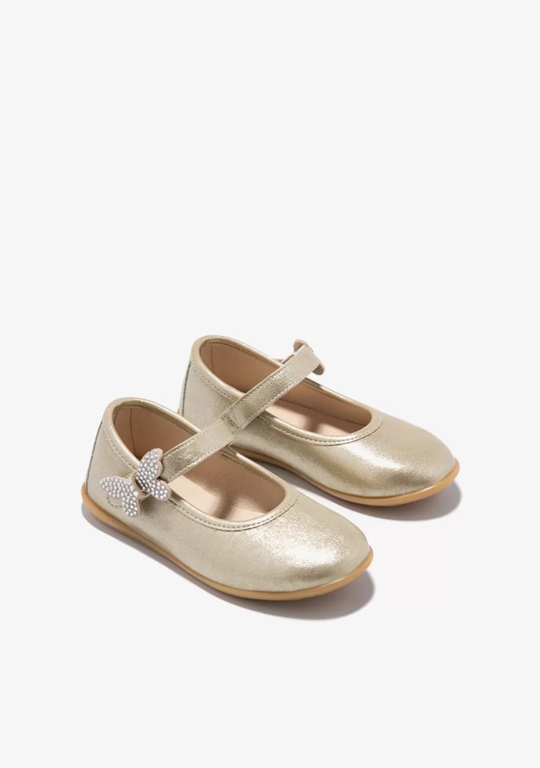 Dale un toque de encanto al look de los más peques con las bailarinas doradas de Conguitos.