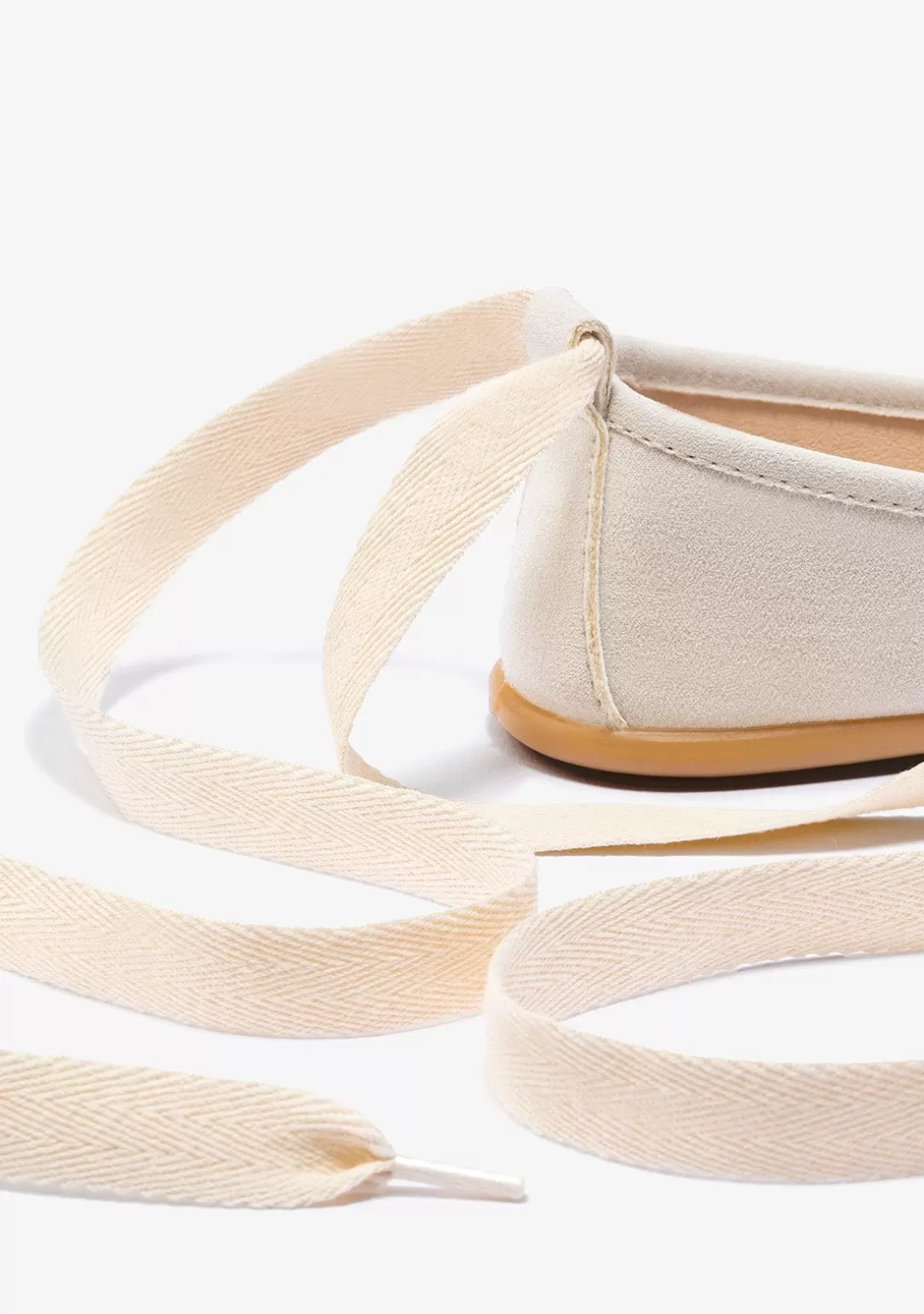Bailarinas de micronapa. Tira de algodón para atar a la pierna o al tobillo y también adorna la parte delantera. Suela de goma para mayor comodidad y confort. Estas bailarinas son el calzado ideal para cualquier ocasión o evento.
